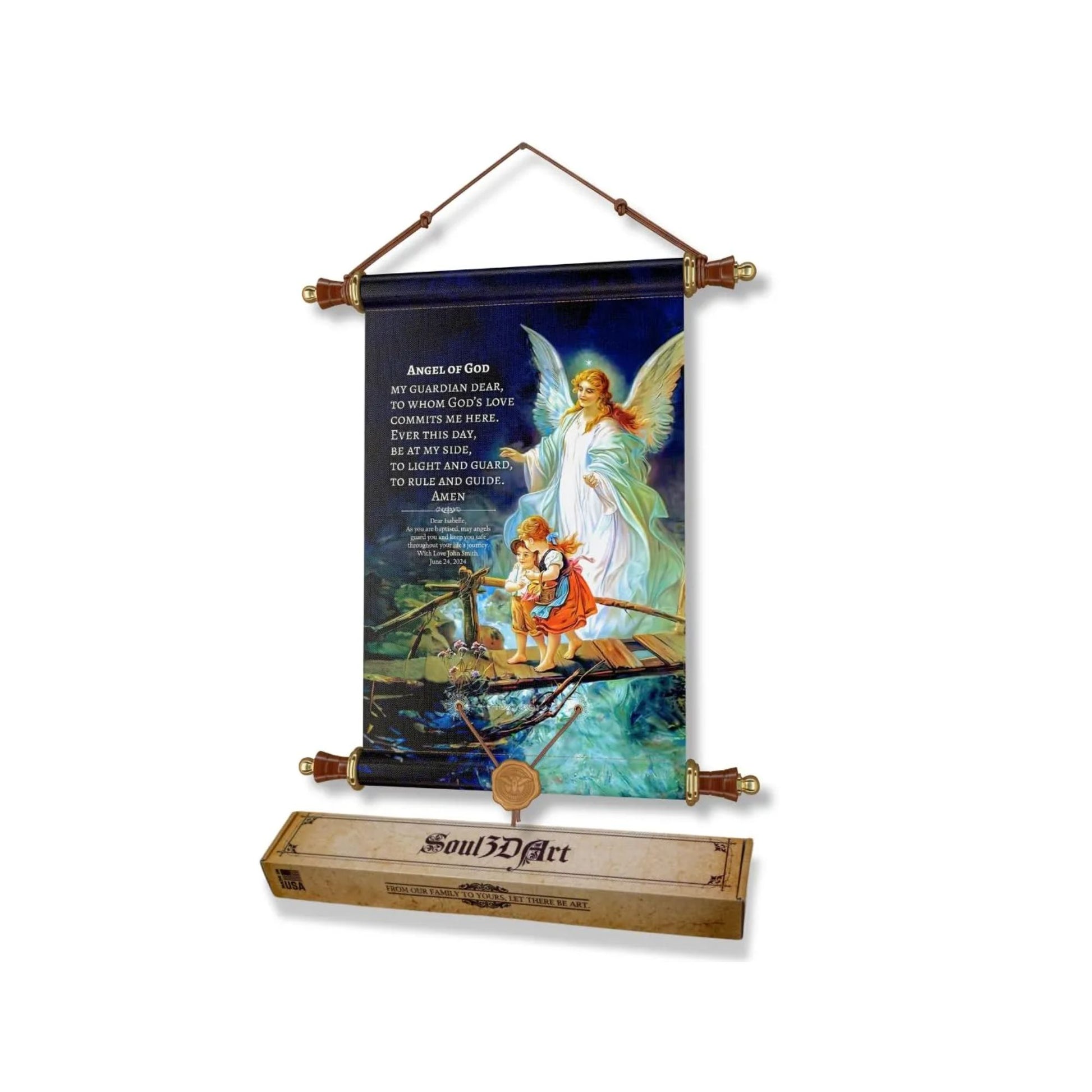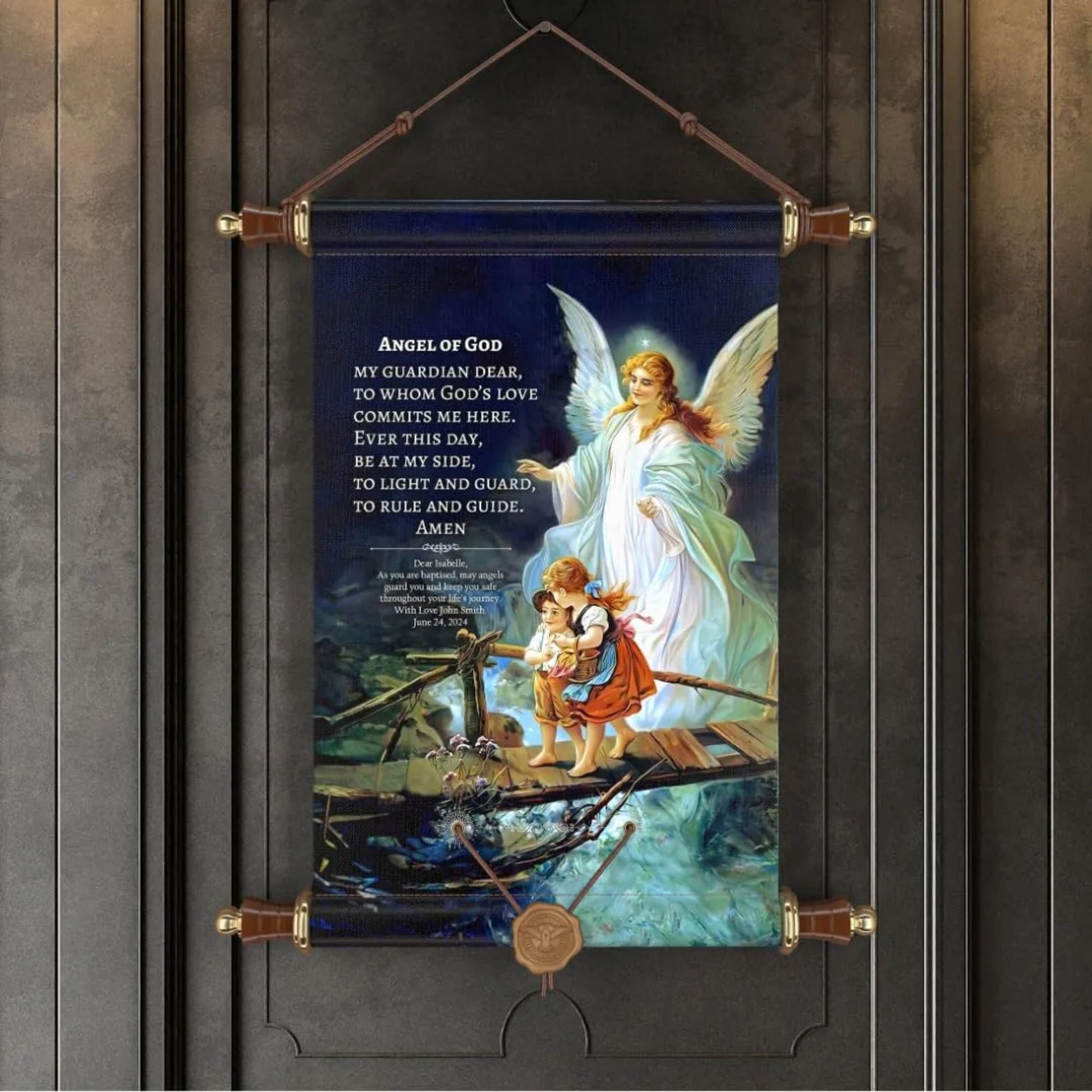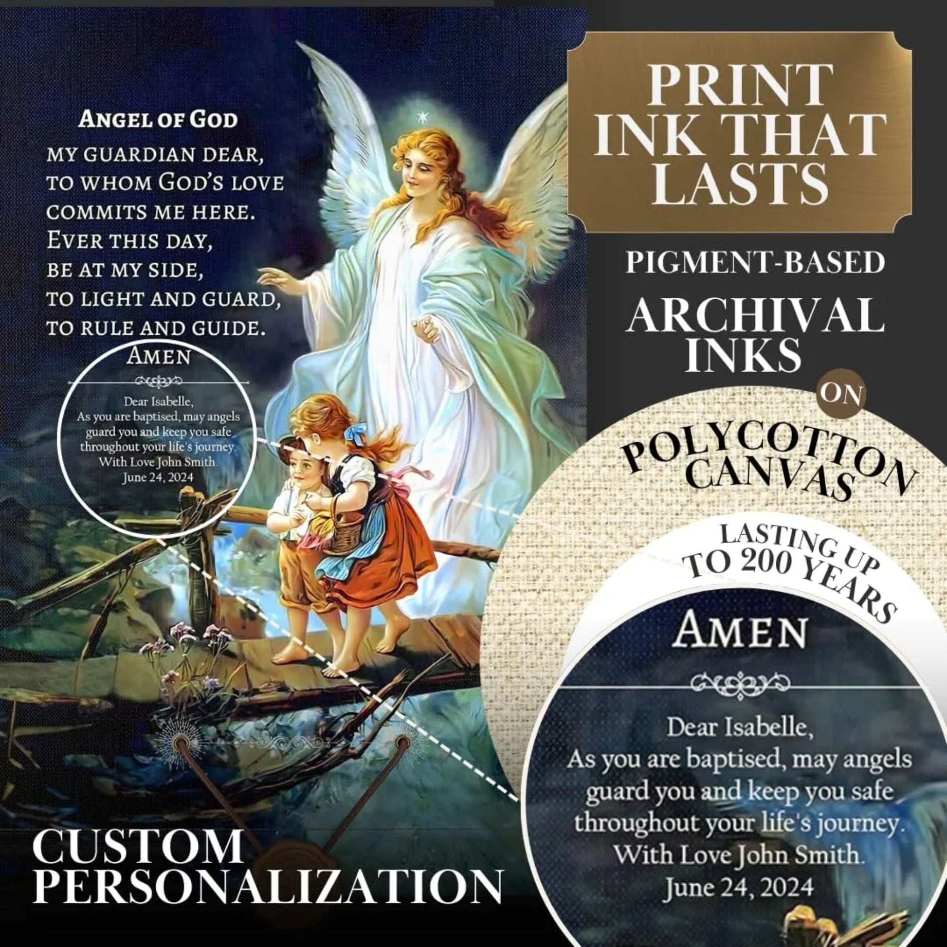 Guardian Angel Prayer Wall Art, Christening Canvas Wall Decor, Christian Baby Gifts, Catholic Baby Dedication Gift, Godson, and Goddaughter