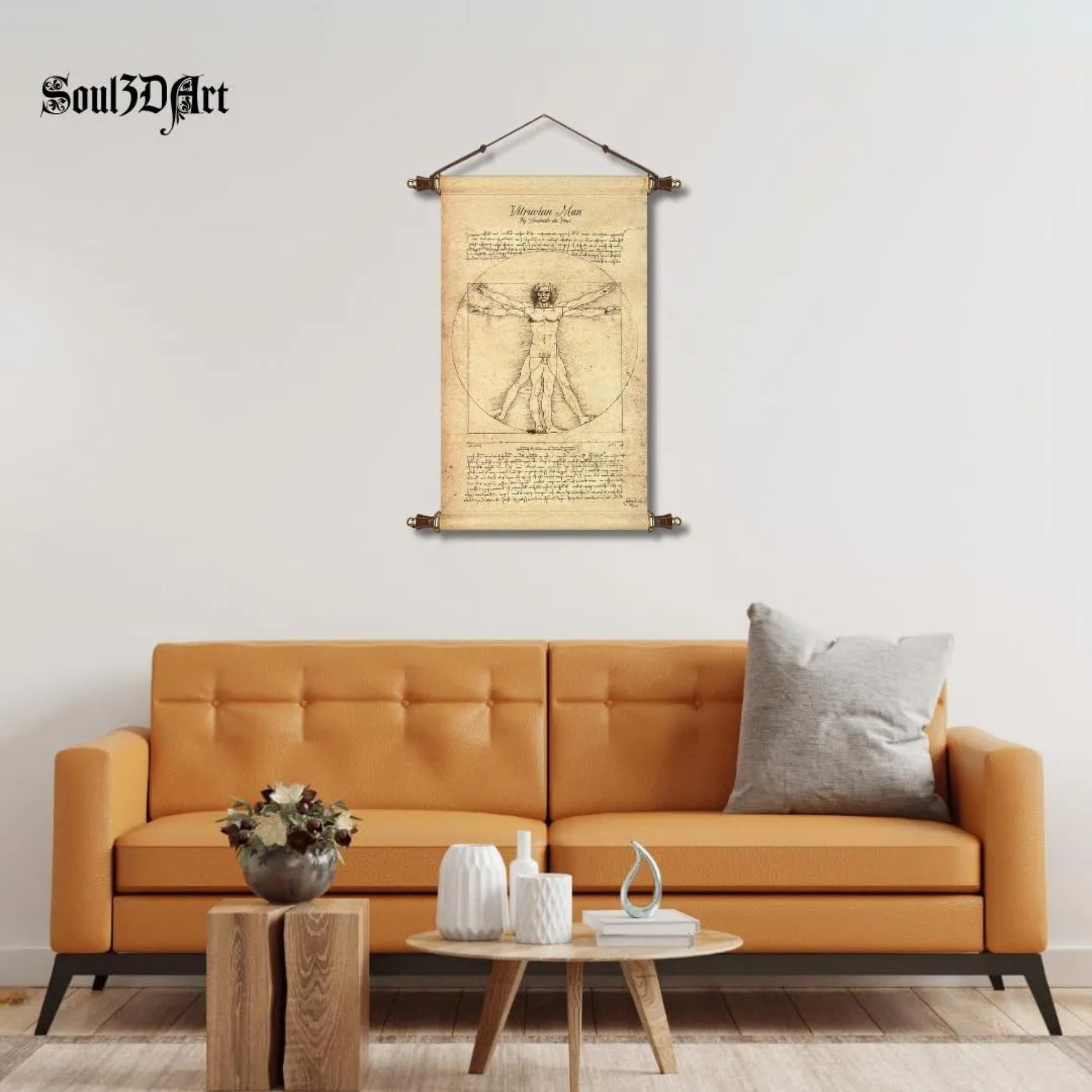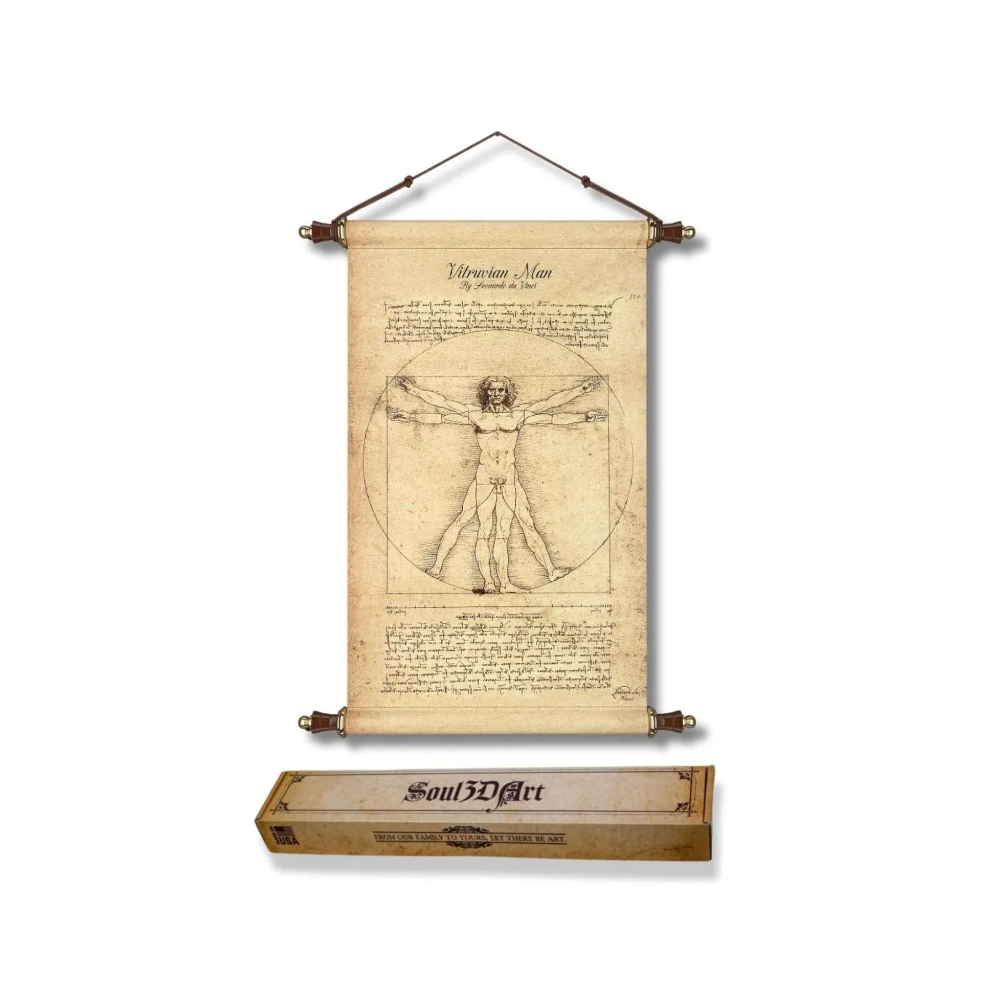 - Inspirational Decor for Every Home: Transform your space with this Vitruvian Man decor, a canvas wall art that blends the iconic imagery with artistic beauty. This Vitruvian Man picture is perfect for creating a warm, inviting atmosphere, where classic art meets modern decor in every detail.