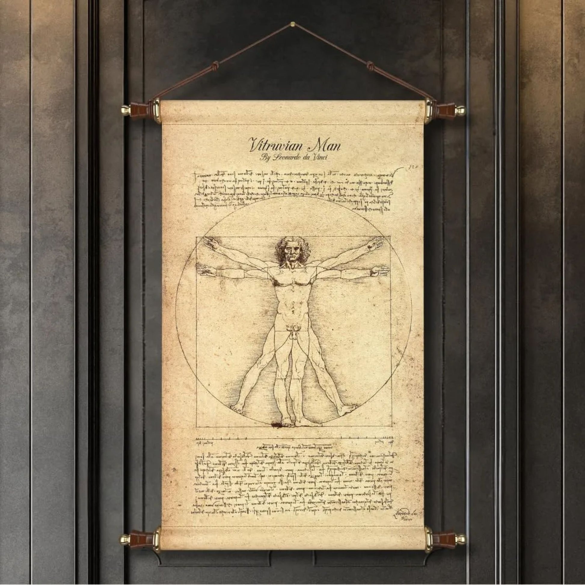 - A Timeless Statement: This Vitruvian Man wall art is more than just artwork; it’s a lasting testament to the harmony of divine proportion. The Vitruvian Man wall decor serves as a daily reminder of the balance and beauty of human creation, fitting seamlessly into any space as home decor or classic artwork for walls, enriching your environment.